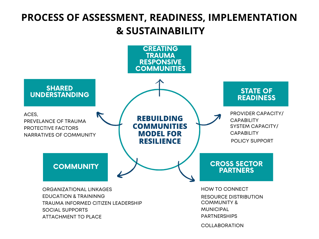 The Rebuiding Communites Resilience intiative seeks to improve the health of children, families, and communities by fostering engagement between grassroots community services and public and private systems to develop a protective buffer against Adverse Childhood Experiences (ACEs) occurring in Adverse Community Environments (ACEs) – the “Pair of ACEs."